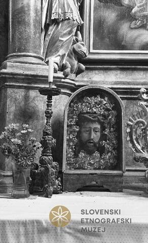 Podružnična cerkev Jeruzalem, voščen Jezus v omarici na desnem stranskem oltarju.
