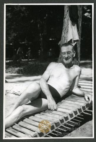Joža Kozak na plaži. Prvo leto na dopustu v Crikvenici, 60. leta 20. stoletja. V: album VII.A.