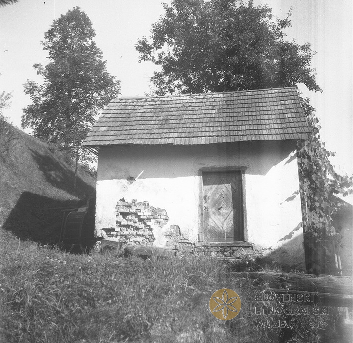 Ohojakov maln (mlin) v Sužidu; pogled z vhodne strani. Teren 7 - Kobarid, 3.7. - 3.8.1951.