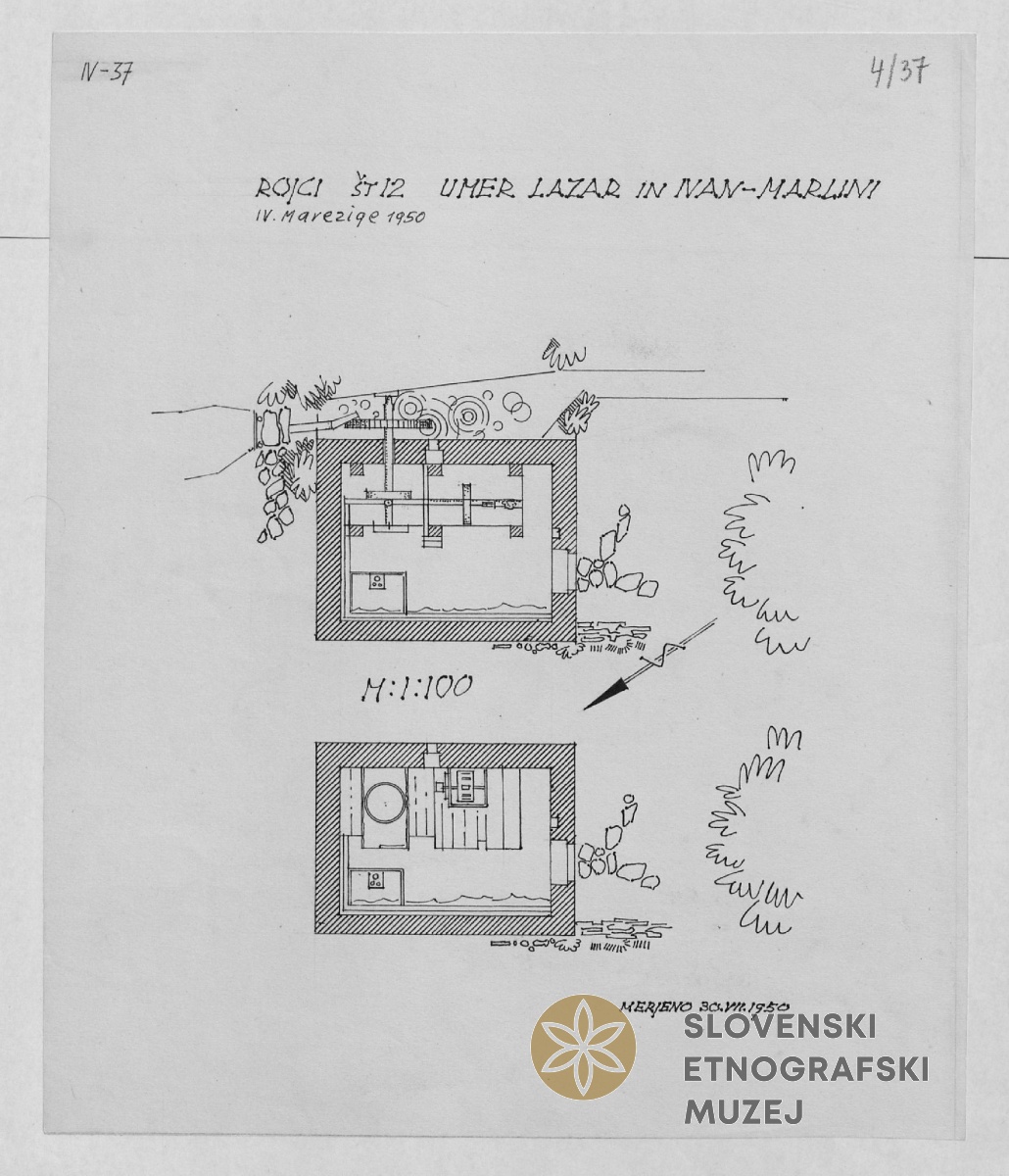 Mlin, tlorisa, Rojci 12, lastnika Umer Lazar in Ivan - Marlini.