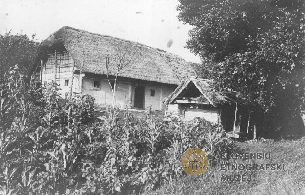 Kmečki dom, enonadstropna hiša ob cesti iz Otoč na Brezje. Fotografirano v letu 1919.