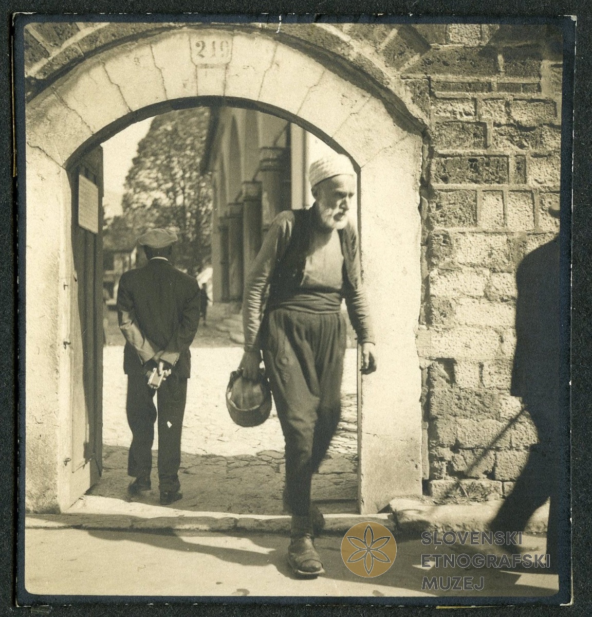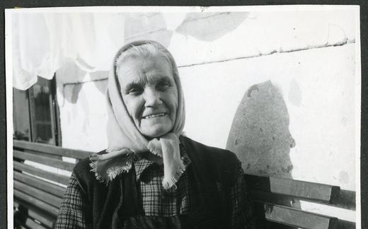 Hildina mama na terasi. Joža Kozak je seriji fotografij dodal opis Prijazen dom v Kranju. V: album...