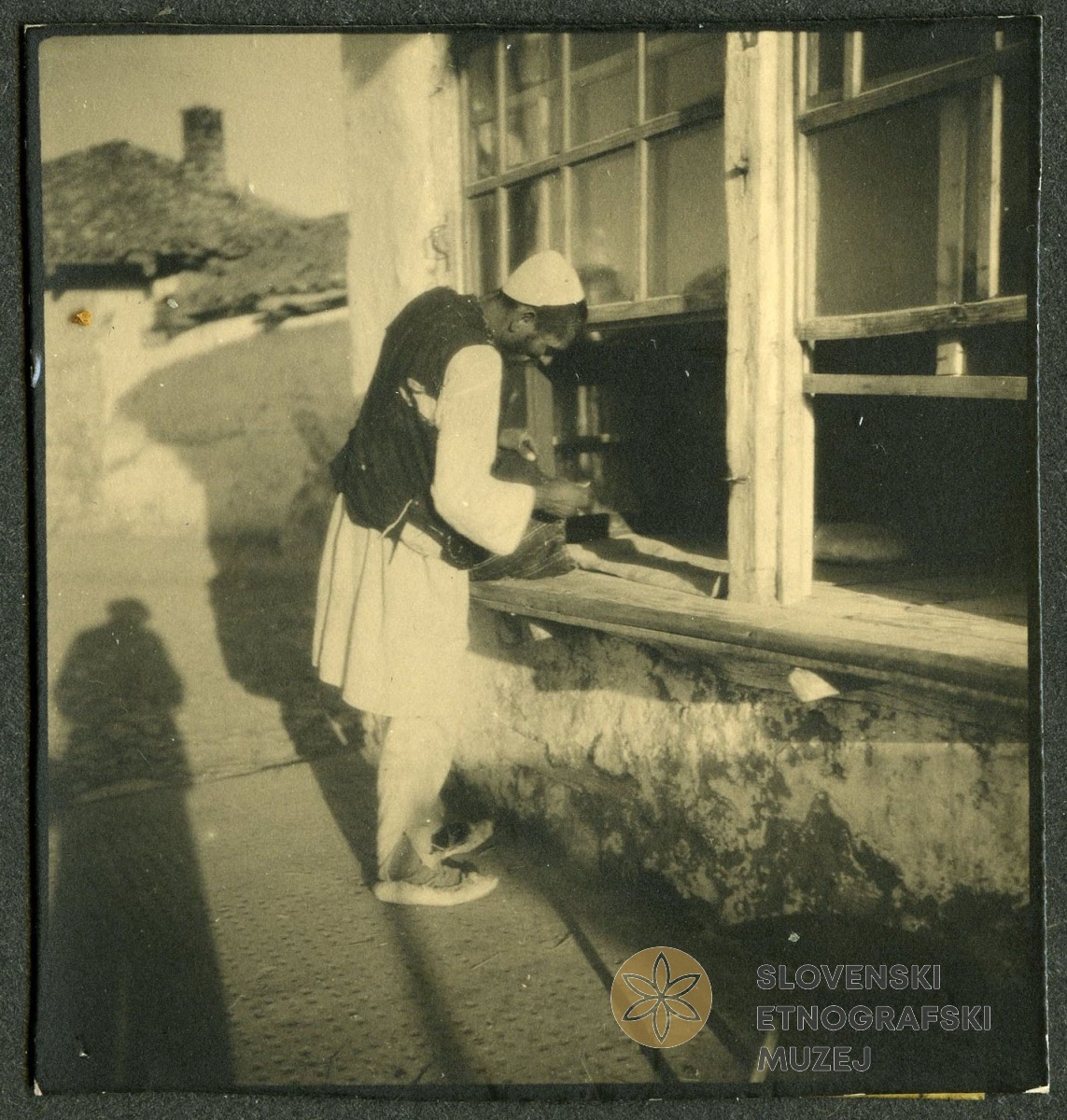 Joža Kozak na terasi. Joža Kozak je seriji fotografij dodal opis Prijazen dom v Kranju. V: album...
