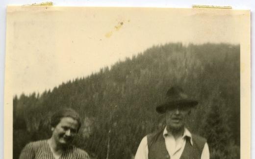 Joža in Hilda Kozak na terasi. Joža Kozak je seriji fotografij dodal opis Prijazen dom v Kranju. V...