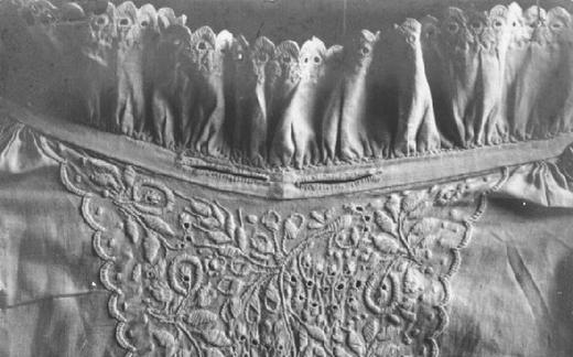 Del vezenine na srajčnem rokavu, nosila Uršula Žerjal, do okoli leta 1900. Last Žerjal Marija,...