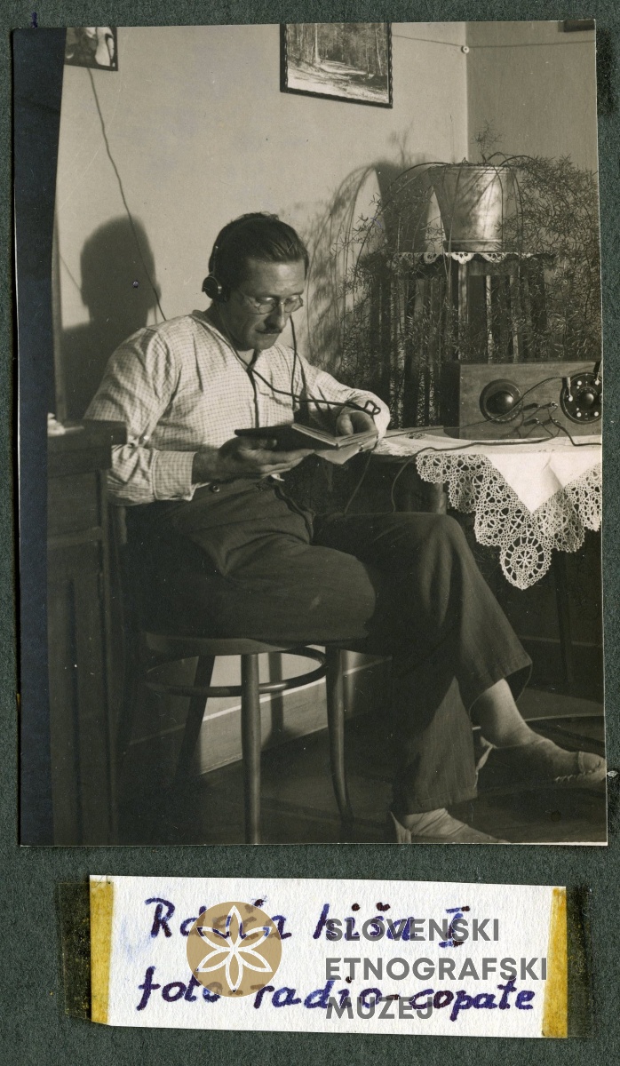 Joža Kozak pri branju in poslušanju radia, okoli leta 1926. V: album I, povojno obdobje.