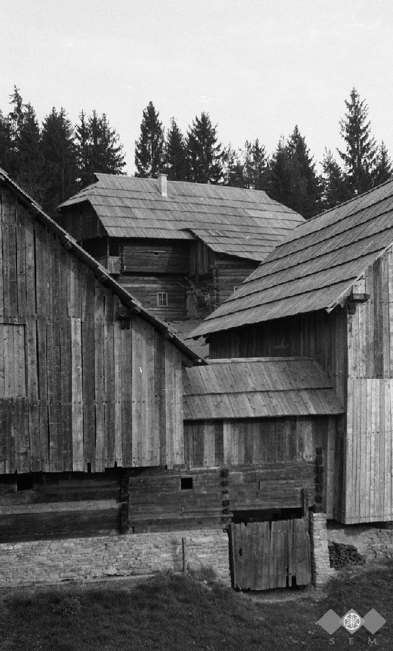 Lesena stavba, kot muzej na prostem, ob delavskem muzeju na Ravnah na Koroškem. Teren I - Koroška,...