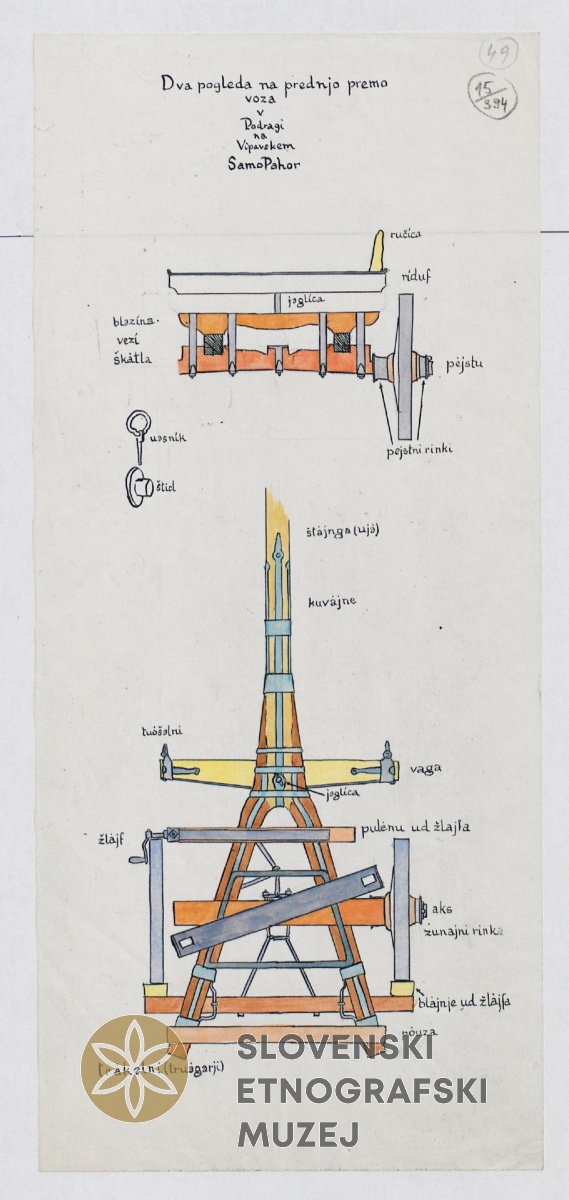 Voz "lojtrski" (ima še lesen "aks" in drugo pe leseno), pri Rejcu. Teren 16-...