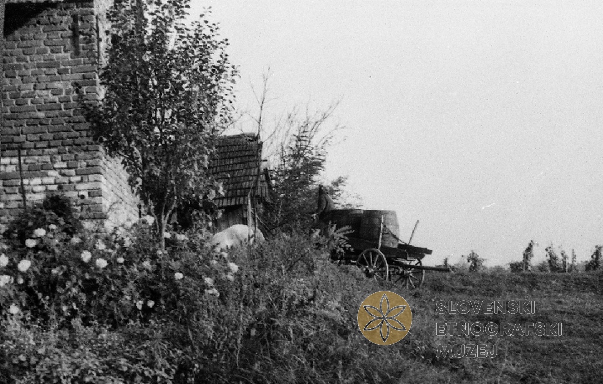 Na vozu pelje sode iz goric do preše v kleti, Zorjan Jože, Šalovci 36. Teren 29 - Jeruzalemske...