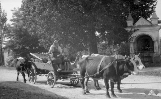 Voz, naložen s surovino za izdelavo ribaric in metel , na poti mimo Homca proti Nagličevemu domu v...