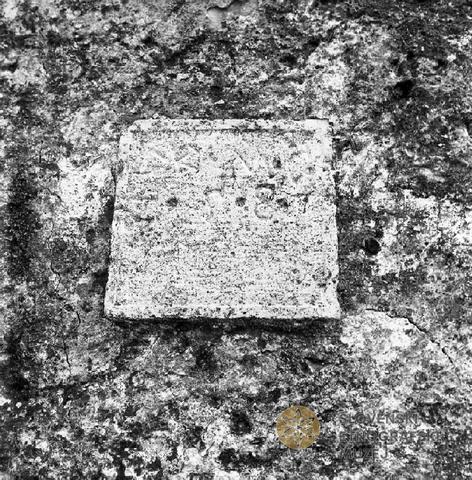 Povir 68 pri Divači, staro župnišče, plošča z napisom MK MG 1581.