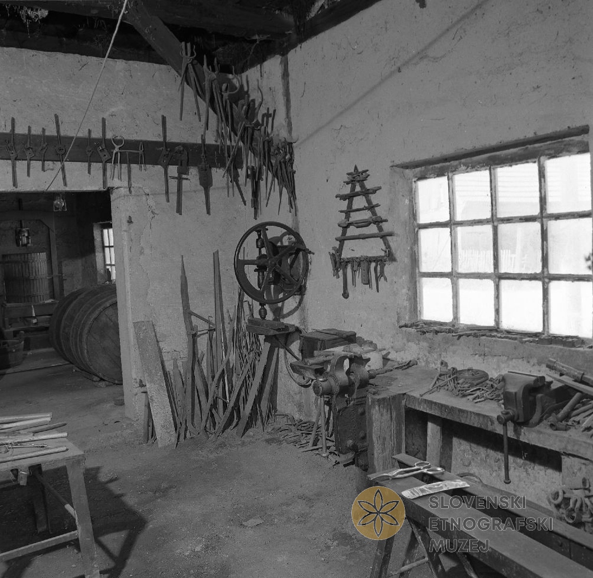 Del kovačnice Jožeta Berkoviča, Bizeljsko 80, zgoraj specialne klešče za razna kovaška opravila...