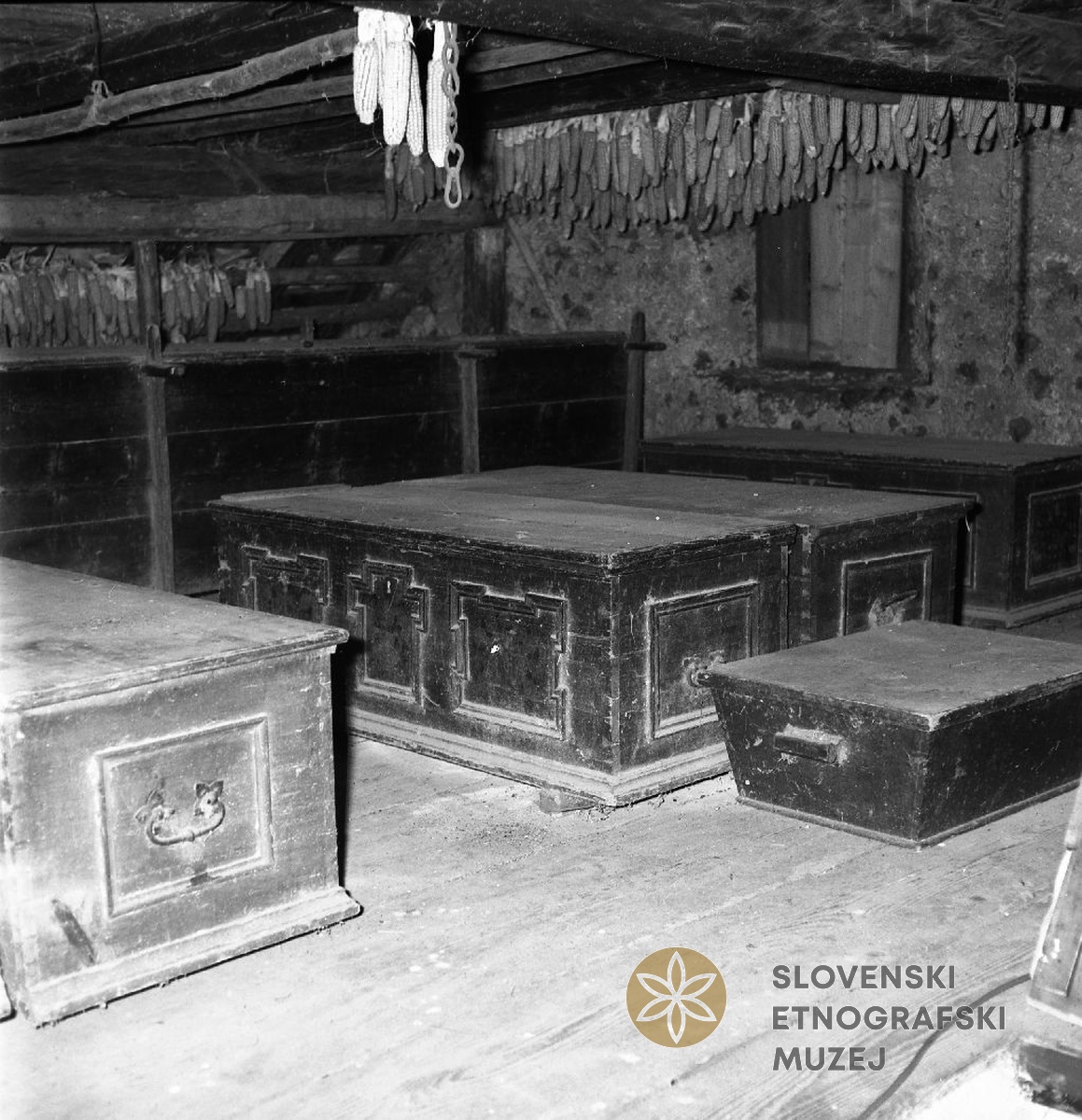 Odložene skrinje na podstrehi, pri Francu Žmitku, Bohinjska Bela 54. Teren 26 - Alpska hiša -...