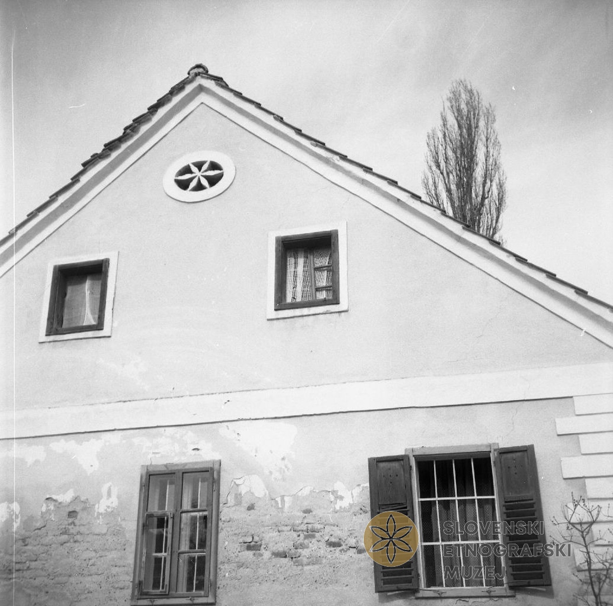 Hiša z glinastimi okraski na vrhu strehe, Bučečovci. Teren 30- Prlekija (Ljutomer, Gornja Radgona...