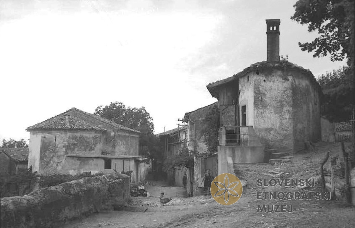 Šuštarjeva hiša in pogled na del vasi "Brith", Budanje. Teren 15 - Vipava, 1. - 28.8.1958...