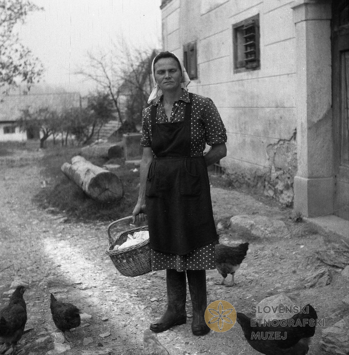 Vsakdanja delovna noša, Pavla Pezdirc, Drašiči 52. Teren 22 - Drašiči, Bela Krajina. Posneto v času...