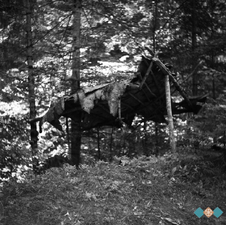 "Holcarska huta" (gozdarsko zavetišče) ob poti Dravče - Šentjanž. Teren I - Koroška,...
