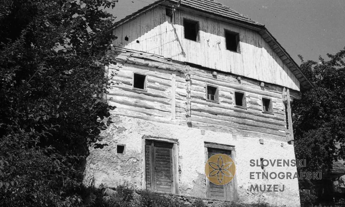 Stara lesena hiša, spodaj kleti. Kamnje 28. Teren 18 - Šentrupert na Dolenjskem (1.-30.8.1961).