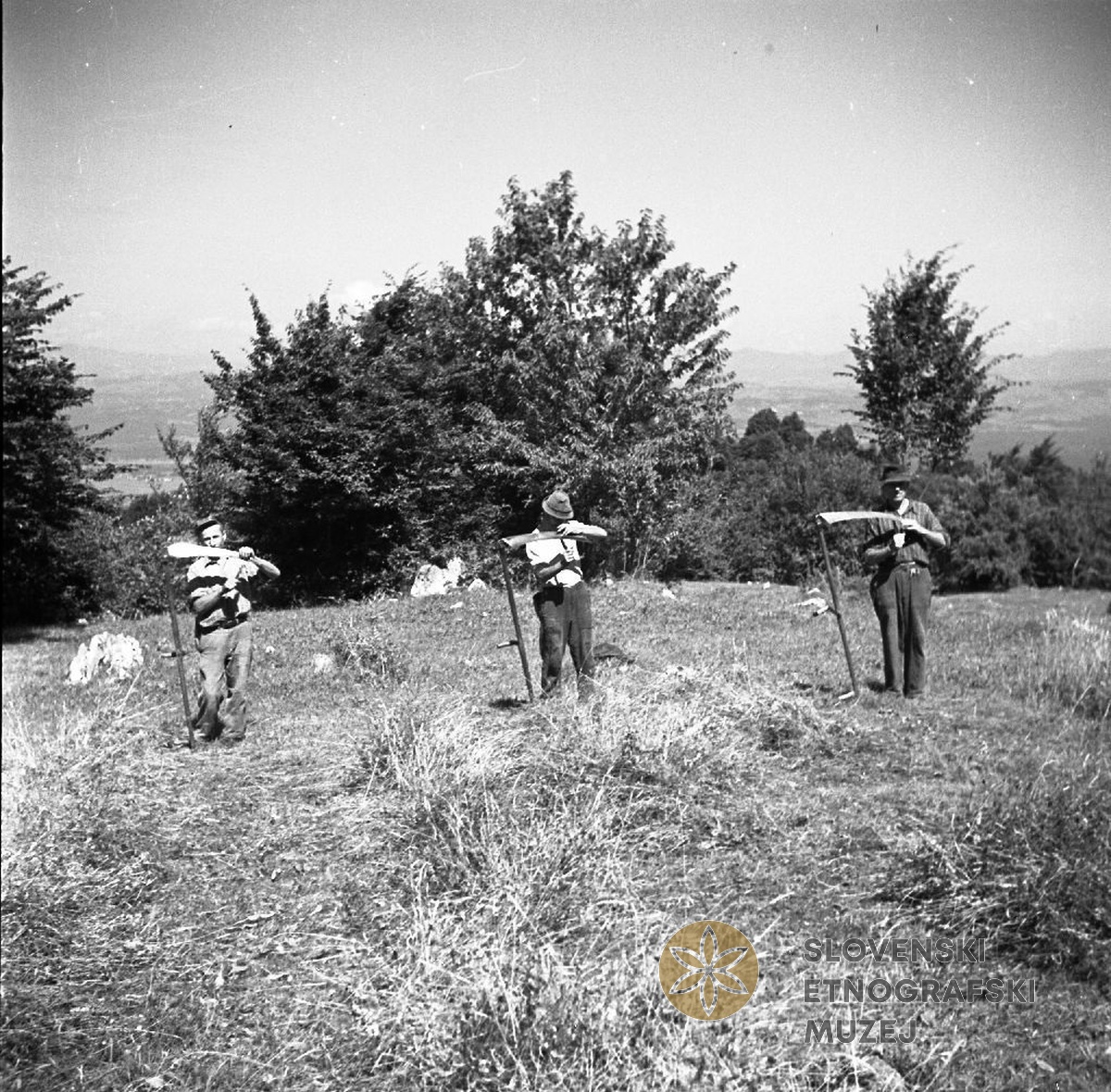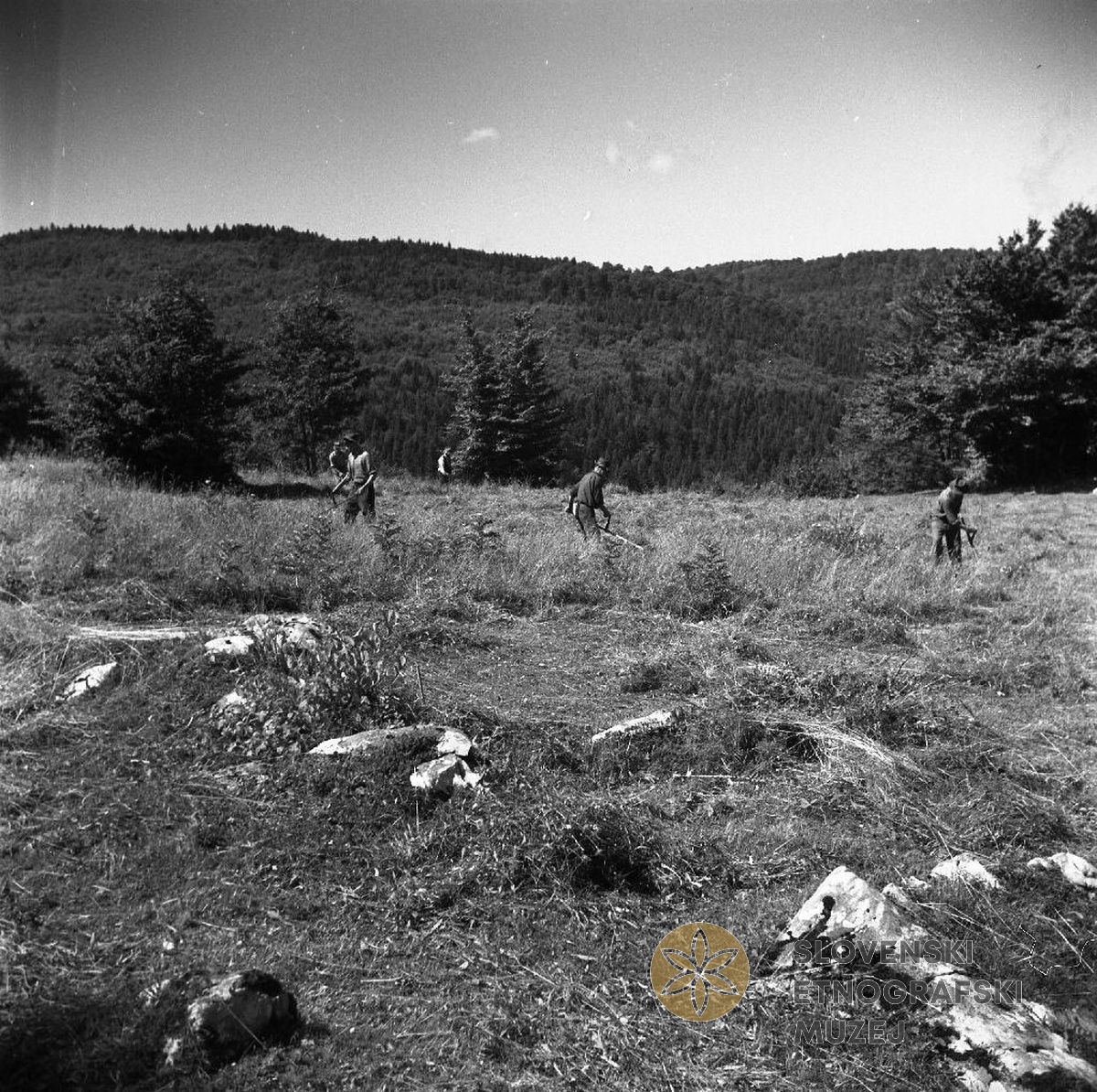 "Pesnico" sušijo za krmo prašičem pozimi, Oštrc. Teren 13- Kostanjevica (1.-31.8.1956)...