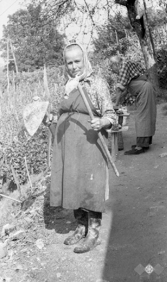 Motka (motika) za okopat, motičica z zoboma za okopanje vrtnin v ogradi, Paradiž, Haloze. Teren I...
