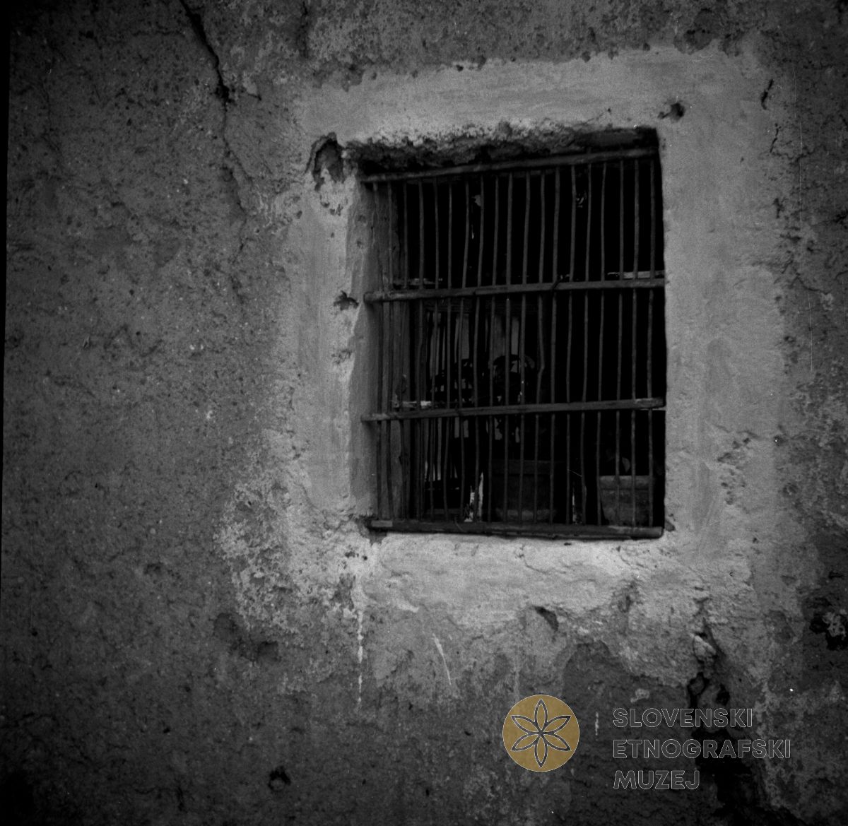 Lesena mreža na oknu. Lastnica Marija Štibernik, pri Štrublu.