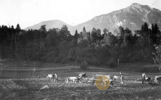 Pospravljanje koruze - "sirk dou jemlejo". Iz fototeke študentskih ekip. Pridobljeno l...