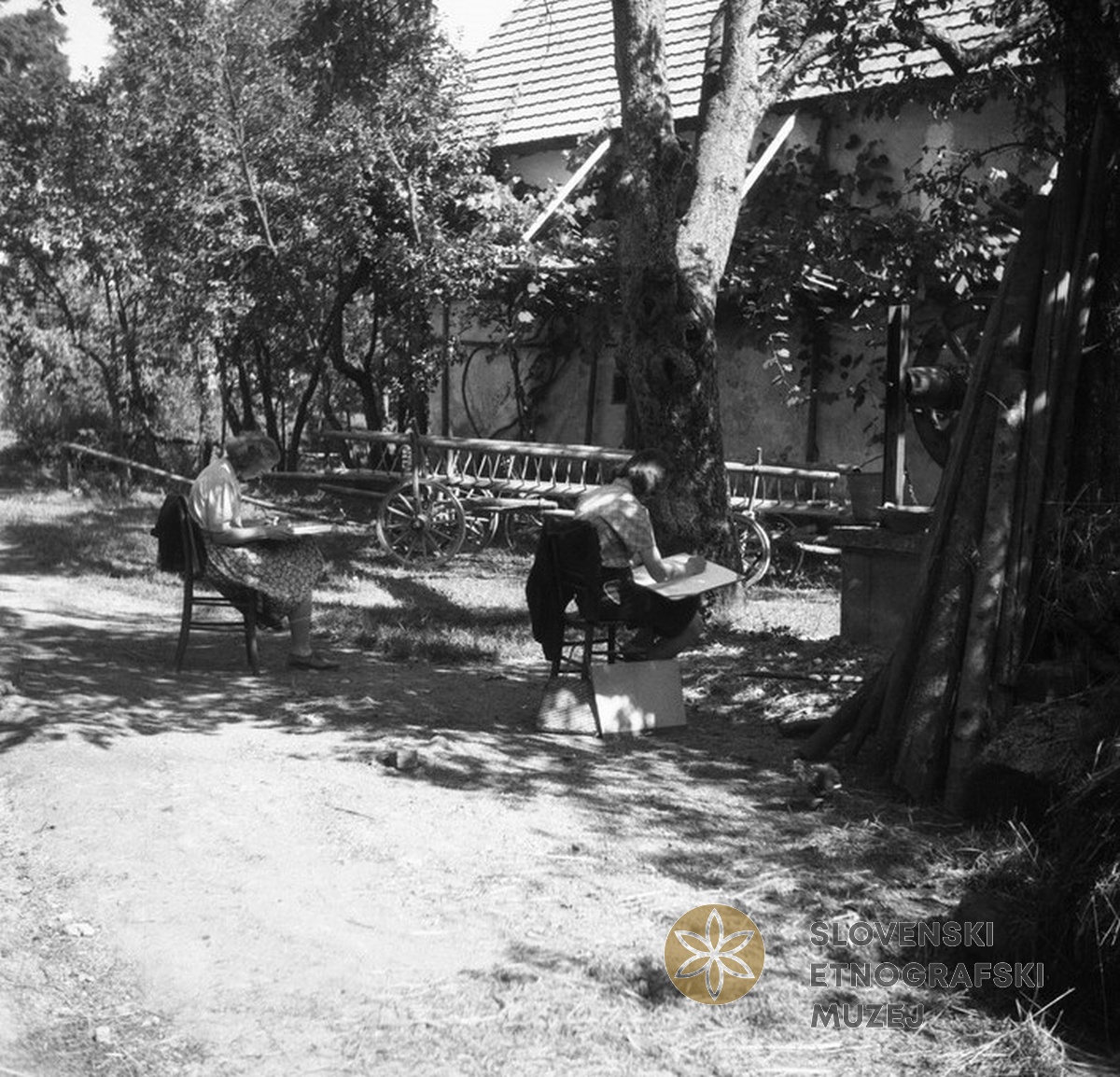 Tov. Šuštar in Matelič v Selah rišeta vodnjak in pehar, pri Koren, št. 13. Teren 2: Šmarje- Sap-...