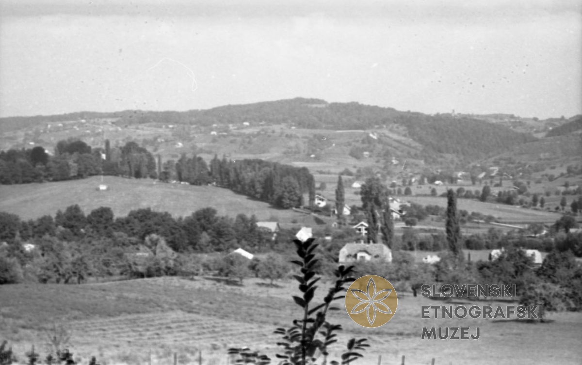 Pogled z Vinskega Vrha nad Šmarjami pri Jelšah na nasprotno stran: Dvor, Zastranje, Vrh. Teren 27...