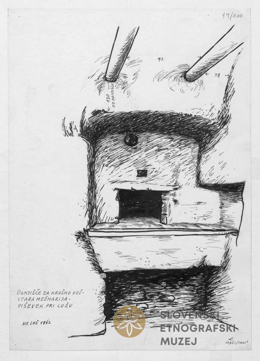Zapuščeno ognjišče v stari mežnariji v Viševku. Teren 19 - Loška dolina (1.-15.8.1962).