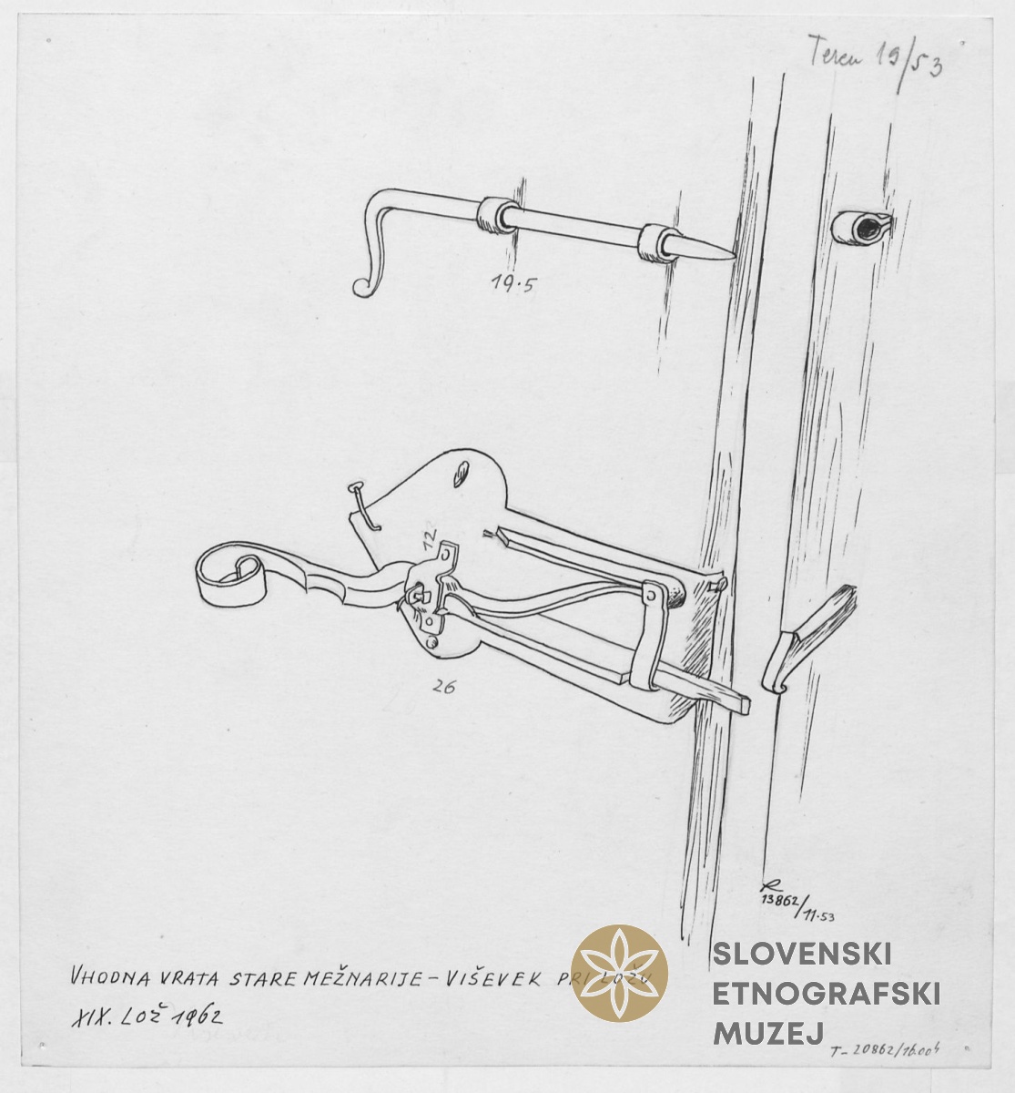Izrezljana vrata, pri Blaževih, Mlakar Frančiška, Viševek 41. Teren 19 - Loška dolina (1.-15.8.1962...