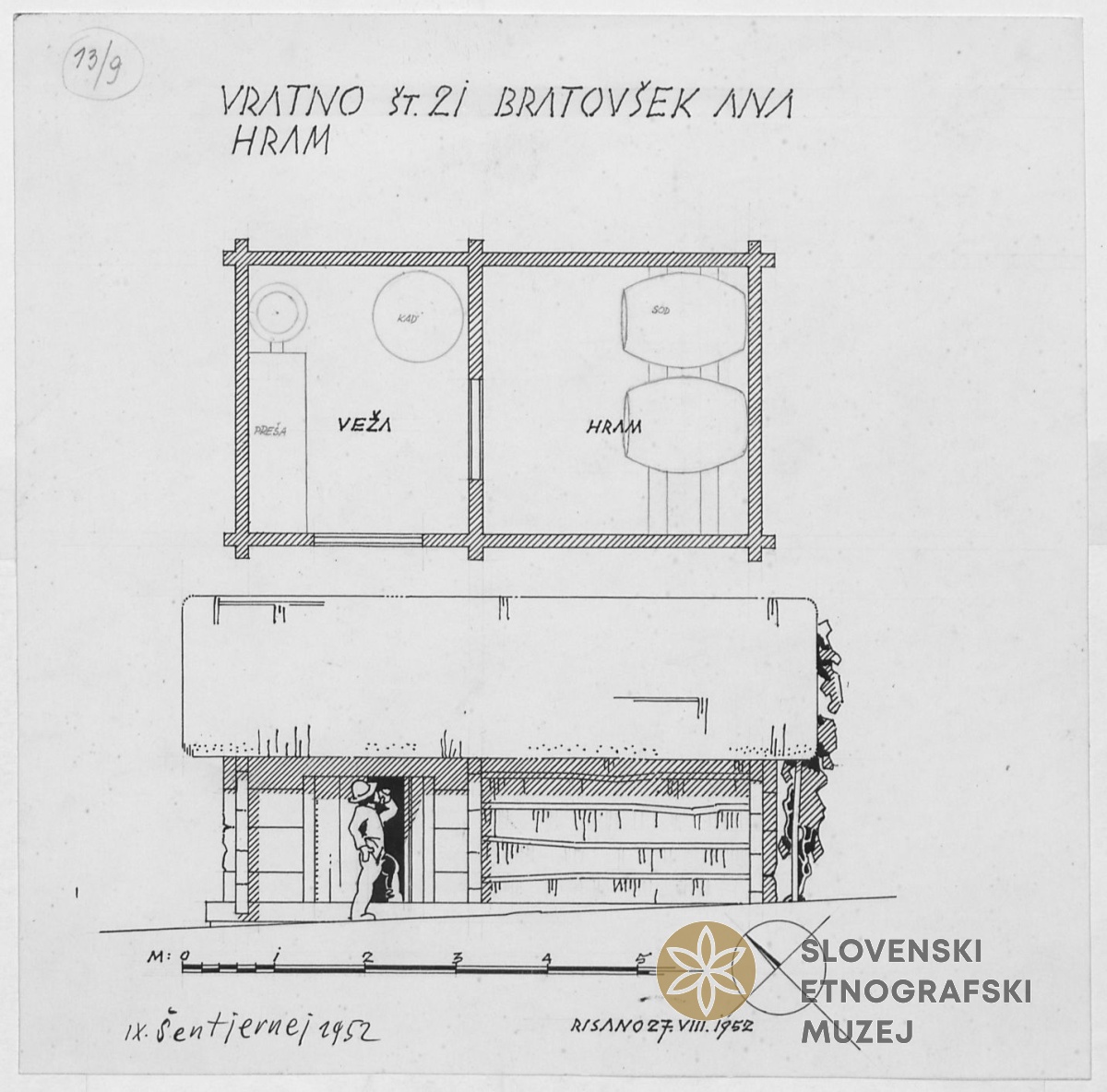 Hram - tloris, fasada. Lastnica Ana Bratovšek, Vratno 21.