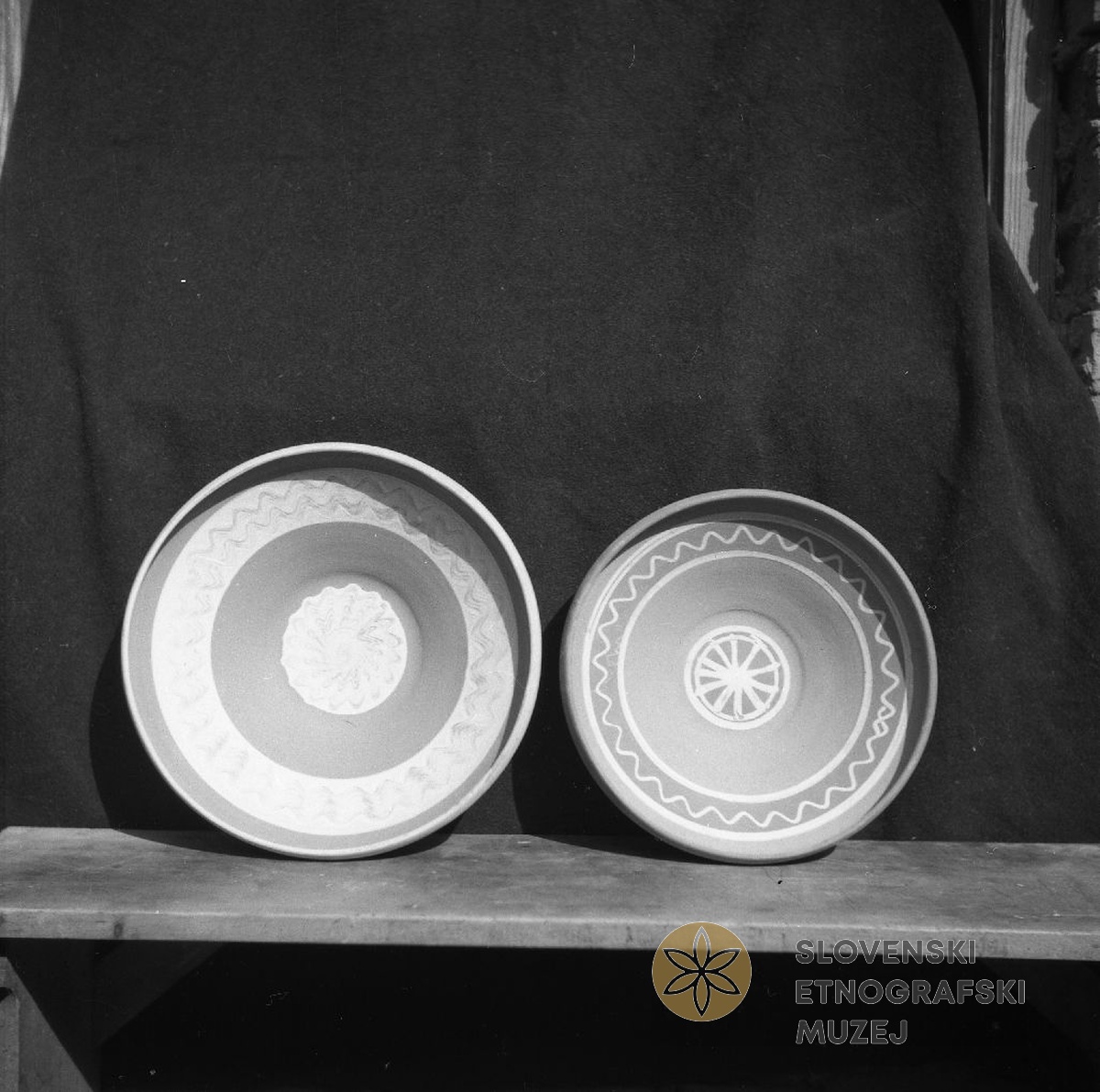 Dve skledi- po drugem žganju (glazirani). Izdelal Zupančič Leopold, lončar, Vrh 18 (prej Cerov Log...