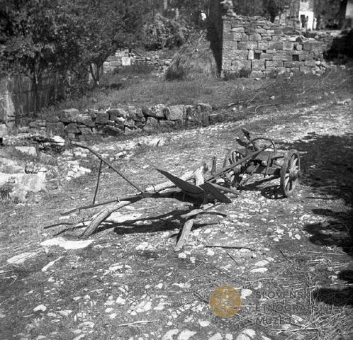 Plug ("pleh") na podgori (=priprava na kateri vozijo plug na njivo) s kulami in ključem, Labor.