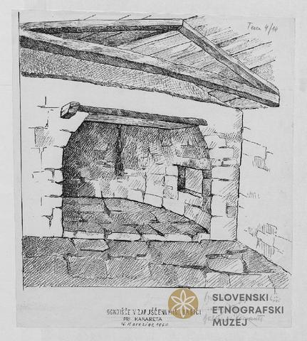 Ognjišče v zapuščeni hiši, pr Kamareta.