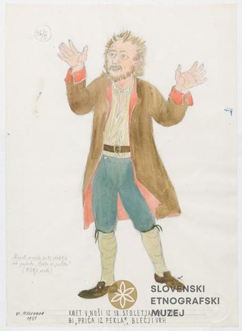 Kmet v noši iz 18. stoletja na podobi "Priča iz pekla" (cerkev).