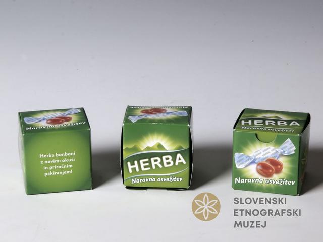Promocijska škatlica za zeliščni bonbon HERBA, naravna osvežitev, Proizvajalec: ŽITO ŠUMI d.o.o. Kartonasta škatlica zelene barve, vsebuje 3 promocijske bonbone.