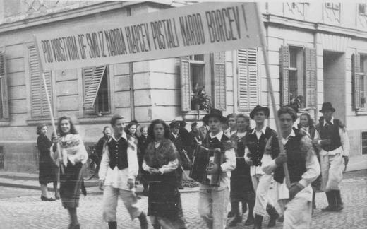 Kot del stavbarstva so zanimivi tudi posnetki hiš s parolami, peterokrakimi zvezdami ali jugoslovanskimi zastavami na svojih pročeljih, ki nosijo politično sporočilo zavezniški komisiji in neposredno nagovarjajo gledalca. Na stenah so zapisane zahteve slovenskega prebivalstva za priključitev ozemlja Jugoslaviji, kot npr.: »HOČEMO IN ZAHTEVAMO JUGOSLAVIJO«, »TUKAJ JE JUGOSLAVIJA – HOČEMO TITA«, »TITO – STALIN – CHURCHIL«, »ŽIVELA JUGOSLOVANSKA ARMADA«, »NE POZABIMO HRABRIH BORCEV ZA PRAVICO…«