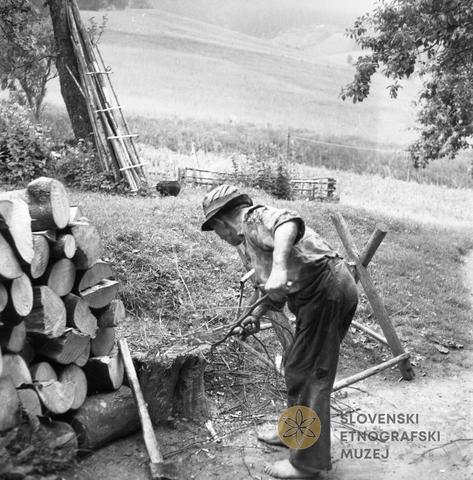 Denovnik Karel seka veje za drva, Spodnji Dolič 17.