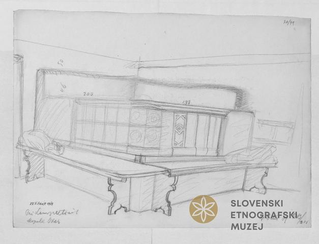 Peč, skica, Spodnji Dolič 79, pri Lampretovih, Leopold Odar.