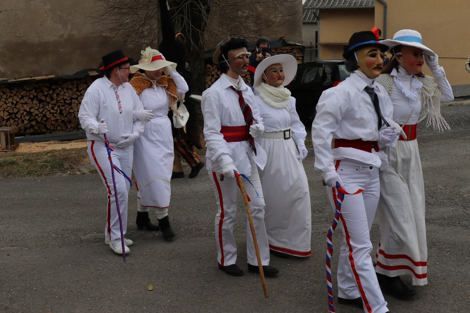 The oldest known preserved document about the Shrovetide characters from Vrbica is a photograph from 1935, when they visited Ilirska Bistrica. Then the group included 28 individuals and only men could take part. After World War Two, the Shrovetide customs were revived and in 1968 women were included.