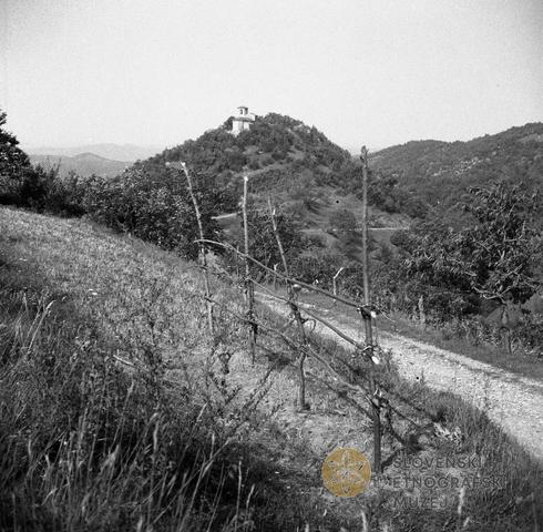 Kozu (c)- (k?zu) za sušenje detelje in pšenice. V ozadju britof.