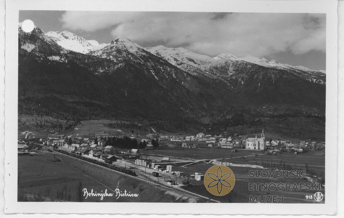 Bohinjska Bistrica s Triglavskim pogorjem. Med leti 1928 in 1947.