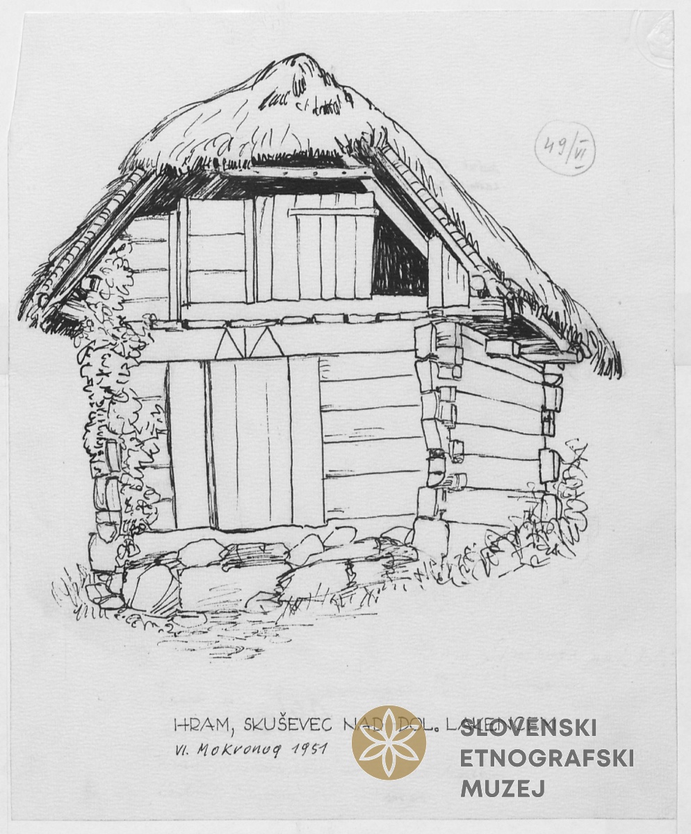 Hram na Skruševcu: 1 tloris, 1 detajl. Lastnik Zajc, Dolenje Laknice.