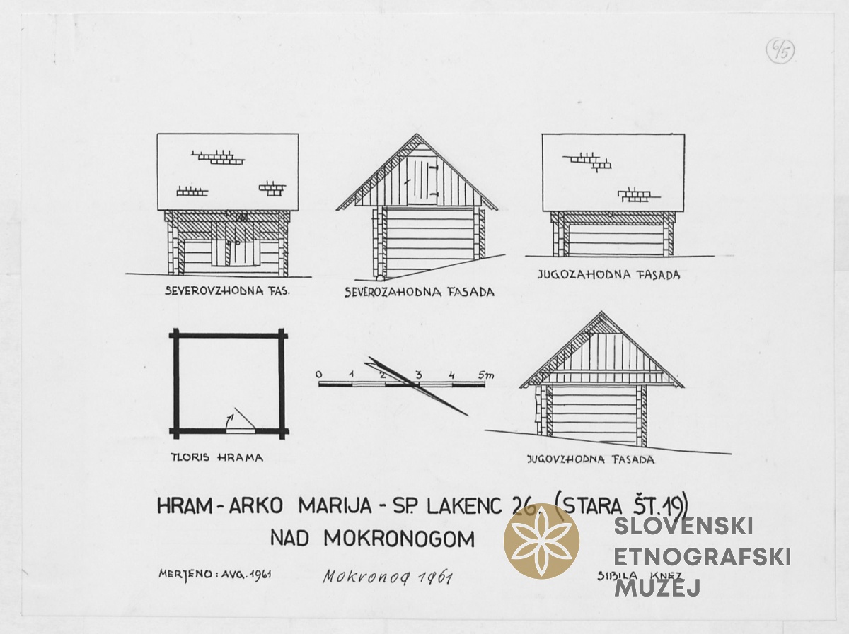 Hram: 4 fasade, 1 tloris a, 1 tloris b, Lastnica Marija Arko, Dolenje Laknice 26.