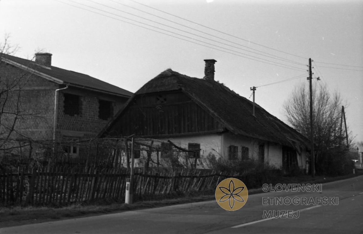 Zadnja stara, ob njej že nova hiša v Križevcih. Teren 30- Prlekija (Ljutomer, Gornja Radgona), 1973...
