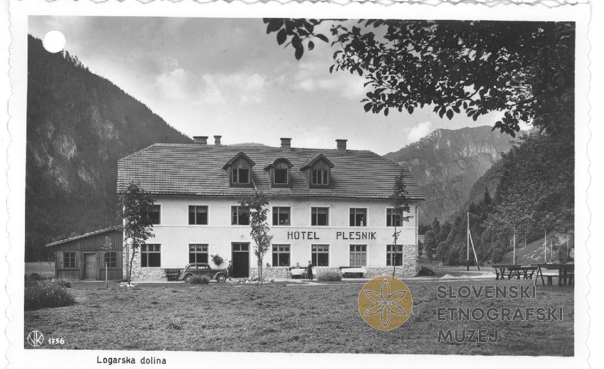 Logarska dolina. Na razglednici Hotel Plesnik. Med leti 1928 in 1947.