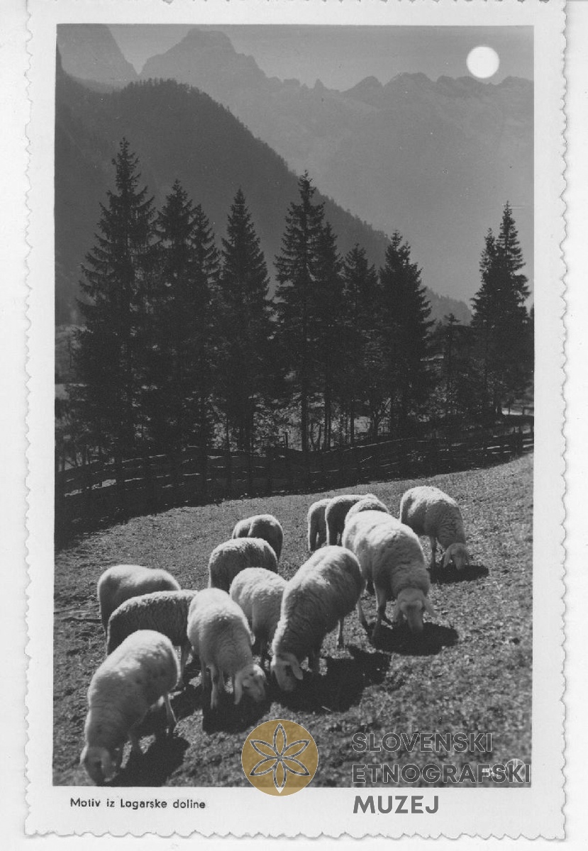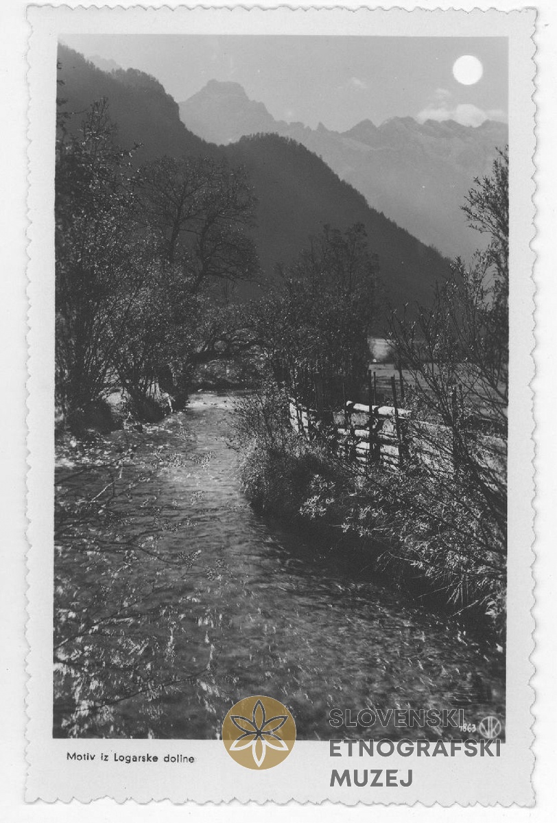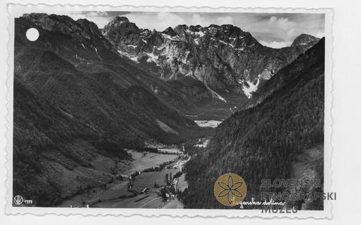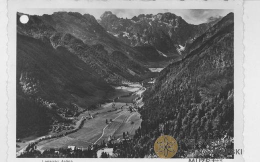 Logarska dolina. Na razglednici Savinjske planine. Med leti 1928 in 1947.