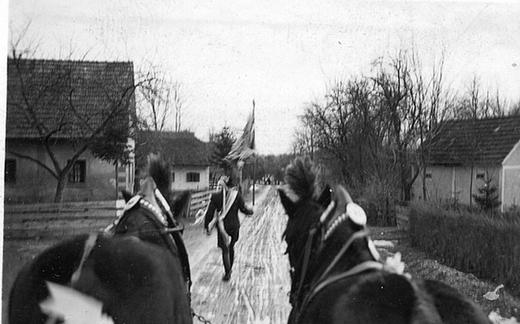 "Ta velik" gumi voz - s kravo in konjem, Štrafek Anton, Markovci 52. Teren I - Koroška,...