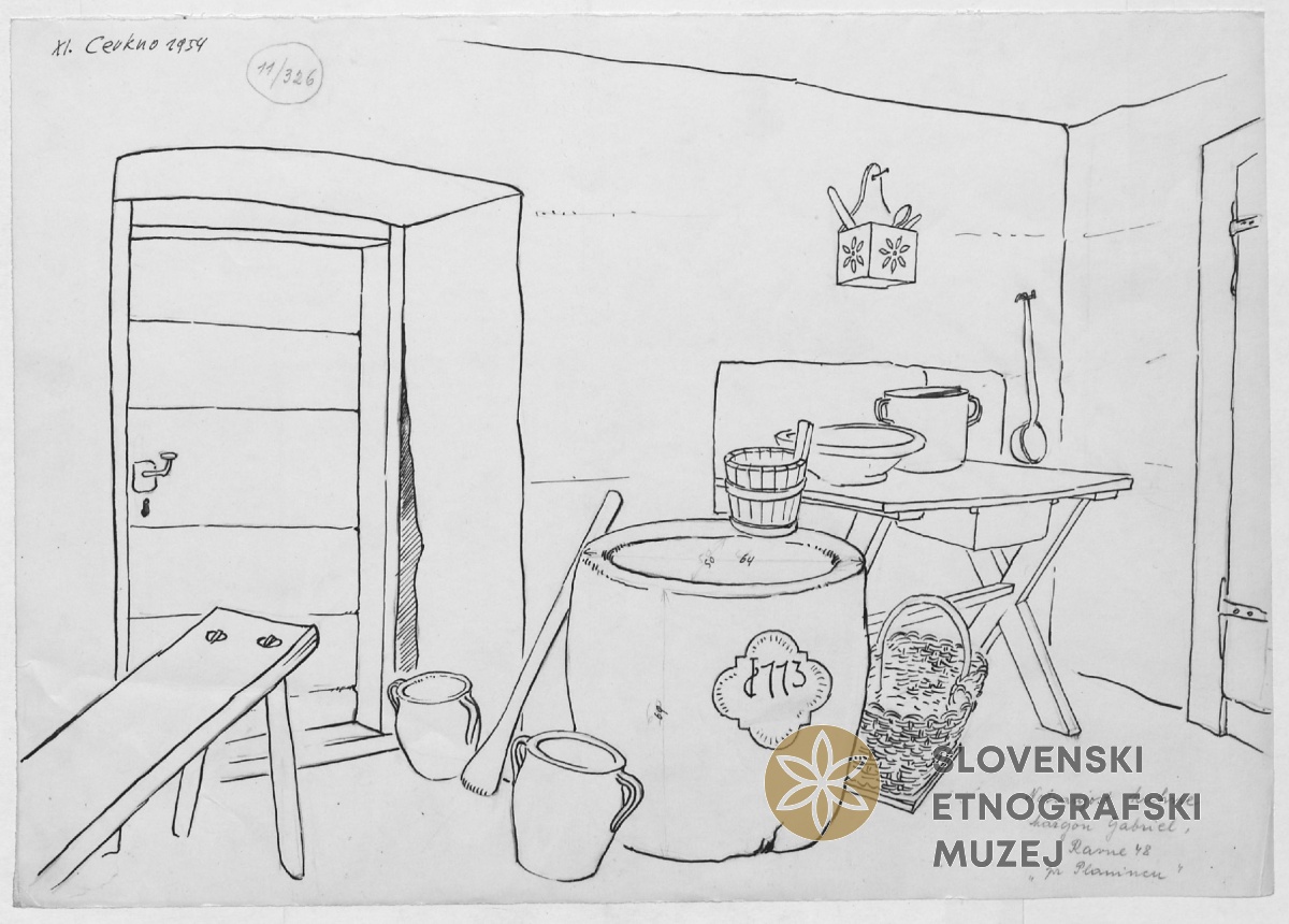 Notranjost kuhne (kuhinje). Ravne 48, Mažgon Gabriel, pri Planincu.