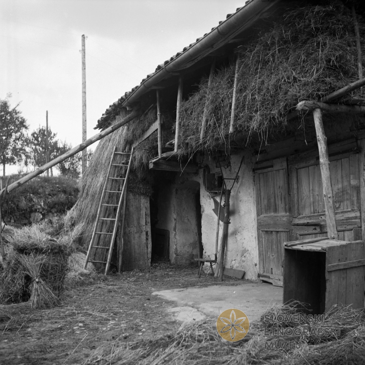 Slamnata paža pred vrati štale (hleva), Ritomeče 5, pri Martinovih. Teren 12- Brkini (1.-31.8.1955).